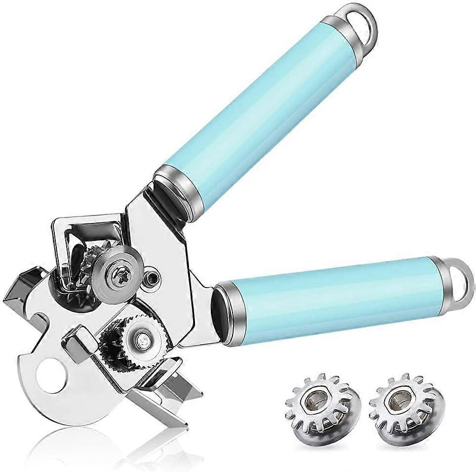 Manual Can Opener, FlyBanboo Upgraded 4 in 1 Multifunction Stainless Steel Heavy Duty Handheld Can Openers with Comfy Grip(sky blue)
