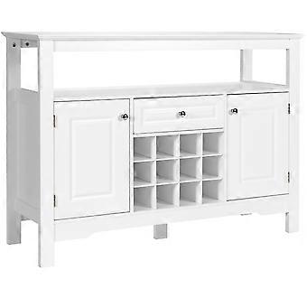 Modern matsalsbuffé med korsformad vinhylla öppen hylla 2 skåp & låda Vit