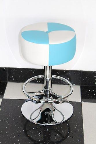 American Diner Retro Style Stool Black Retro-look American diner style stool in blue faux leather, fully upholstered with a chromed steel frame. Easy to clean with generous thick and comfortable pads with a rigid steel frame, providing a fun look with great durability The design of this 50s style retro stool means that they look good in any room Easy to assemble the morani is height adjustable using gas lift mechanism with 360 degree swivel. This item is self assembly. The stools are fully UK fire retardant certified. Seat height adjusts: 600 mm to 760 mm Seat pad size: 360 mm diameter. Seat height adjusts: 600 mm to 760 mm Seat pad size: 360 mm diameter GB FR DE IT AT ES CH NL IE SE DK BE FI PT HU NO