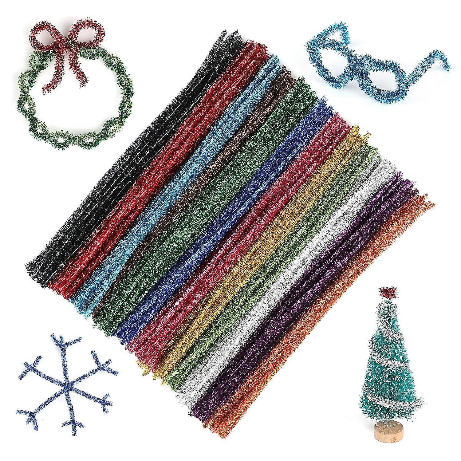 Multi-Colored Glitter Pipe Cleaners, 200PCS Sparkly Pipe Cleaners for Craft, 30CM Christmas Pipe Cleaners, 6mm Glitter Craft Pipe Cleaners for DIY Cra
