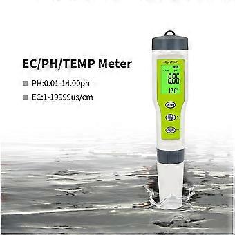 3-in-1 elektronische pH-meter, pH/EC/temperatuur waterkwaliteitstester, 0-14 pH-meetnauwkeurigheid, 2% afleesnauwkeurigheid, set 0-19999 ppm, voor zwemmen P