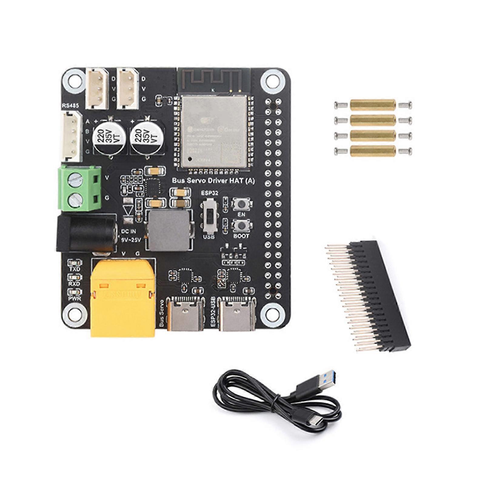 Features: Bus Servo Driver Board Designed for bus servos.Integrated ESP32 and control circuitry can control up to 253 servos via ESP32 serial or USB interface can be used as mainboard for robotics projects Simultaneous control of up to 253 and RSBL series bus servos. Voltage input 9~25V (input voltage matching servo voltage) Based on ESP32-WROOM-32 module, supports various corded and wireless communication methods, provides various control routines, and facilitates various hardware control. Integrated 5V regulator circuit Communication via GPIO serial port reduces wiring complexity Specifications: Size:about 6.5x5.7cm/2.56x2.24in Integrated ESP32 Suitable for RSBL Series Bus Servos Package Includes: 1Set ESP32 Bus Servo Driver Board note: Due to the different monitors and light effect, the actual color the item might be slightly different from the color showed on the pictures. Please allow 1-2cm measuring difference due to manual measurement.