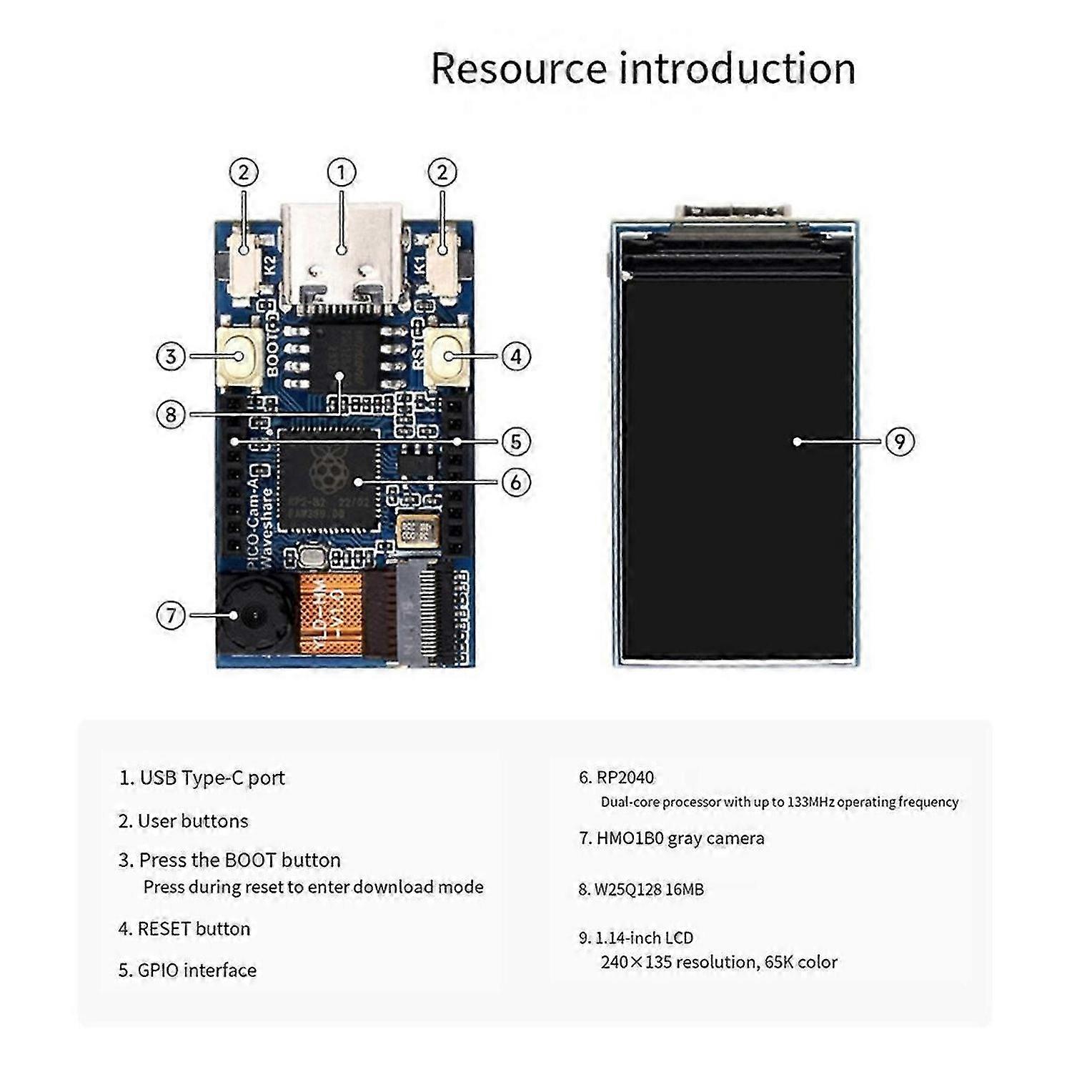 RP2040 Pico Cam Development Board with 1.14 Inch LCD Display 65K Color ST7789 HM01B0 Microcontroller for