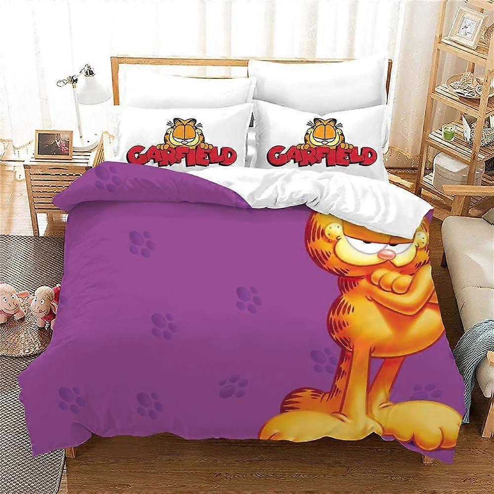 S72 Garfield Bed Linen Set - Duvet Cover and Pillowcase Microfibre 3D Digital Print Three-Piece Bedding (Duvet Cover + Pillowcases) D72