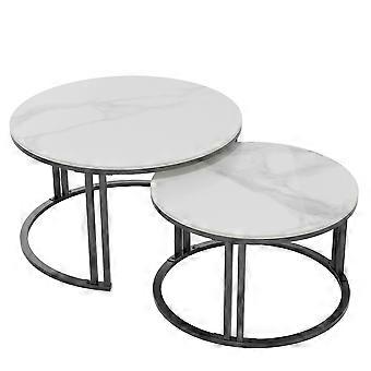 Set van 2 nesten ronde marmeren salontafel stapelen Accent bijzettafel