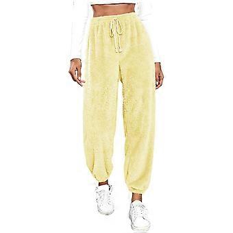 Dames pyjamabroek, zachte flanel, comfortabele broek met trekkoord, warme winterbroek Wit XS
