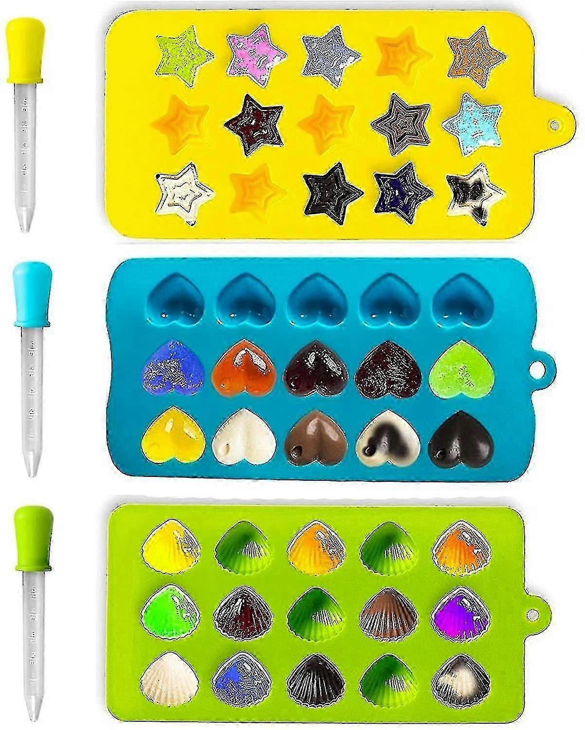 Set of 3 Silicone Ice Cube Molds - Heart, Star & Shell Shapes