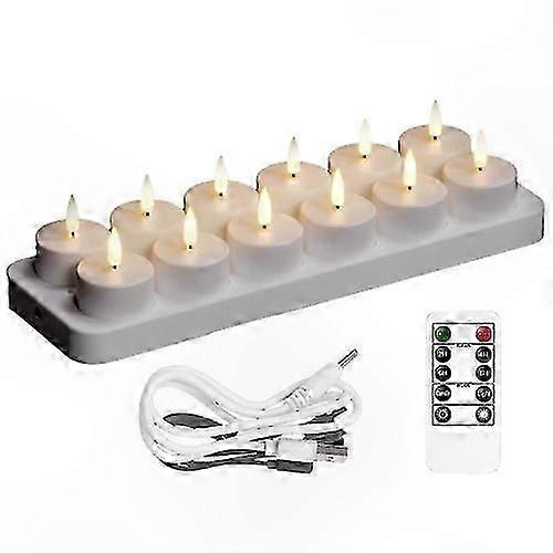 Set of 12 Rechargeable Candles with Base and Remote Control