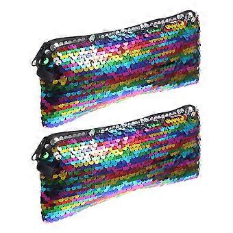 Shiny Sequin Makeup Bag for Women with Durable Polyester Material Multifunctional Storage Solution for Travel 2 Pieces Small Size