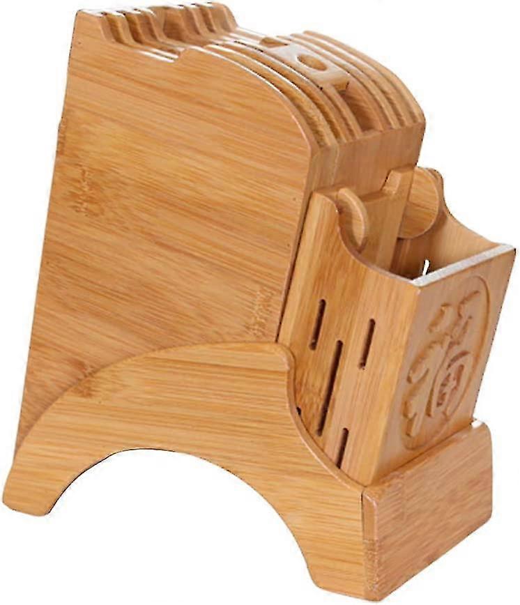 Slotted Knife Block Bamboo Wood Kitchen Cutter Holder Slotted Knife Holder