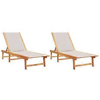 vidaXL Ligbedden 2 st massief acaciahout en textileen crèmekleurig vidaXL