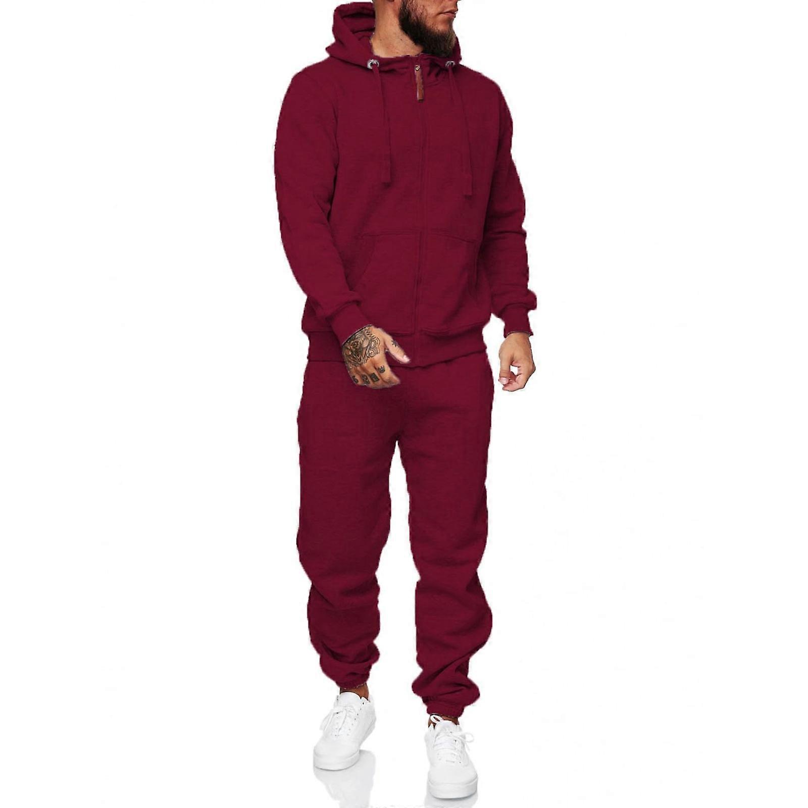 Sweat suits men Tracksuits 2 Piece sets Athletic Jogging suits Casual Outfits for men Burgundy XL