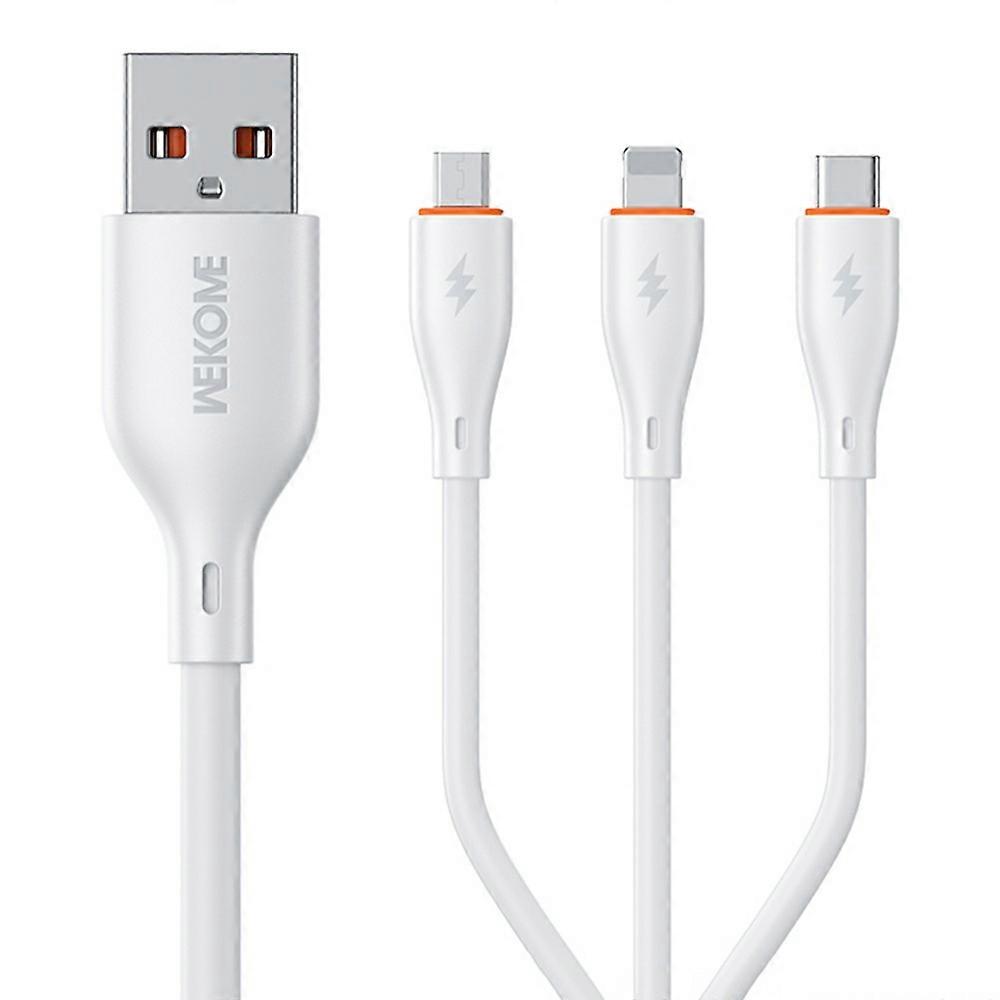 TKdaddy WEKOME WDC-119 Flash Series 1.2m 3 in 1 iP / Micro / Type C 66W Fast Charging 480Mbps Data Cable - White