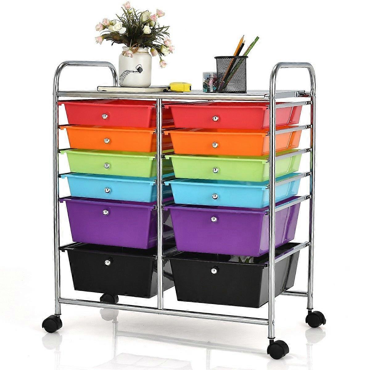 Rullvagn metallram rullcontainer 12 lådor badrumsvagn med bromsar flerfärgad