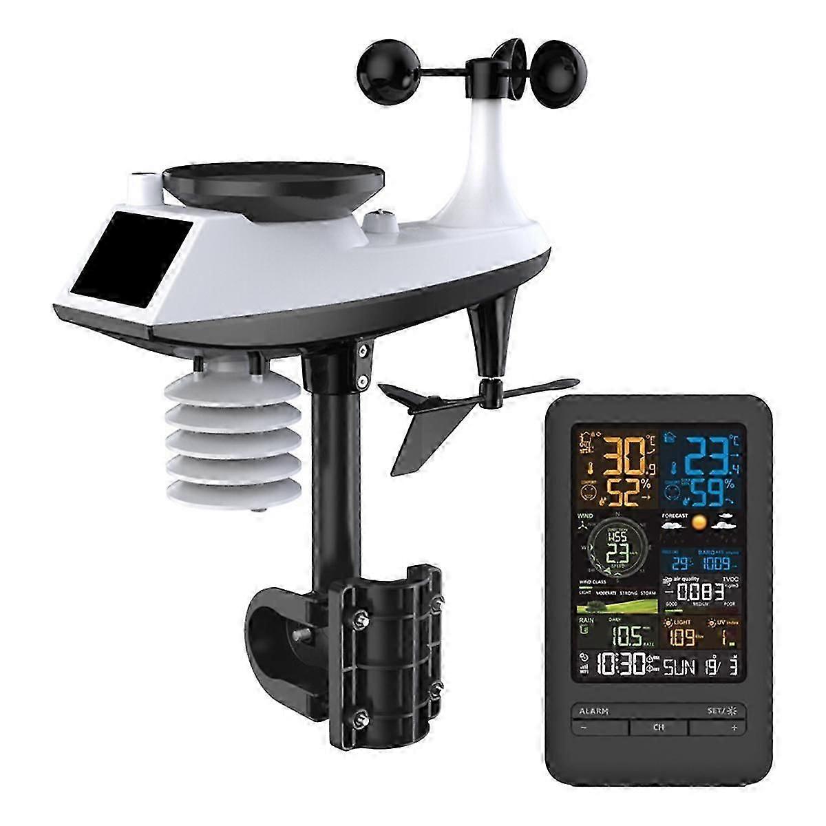 Tuya Weather Station Alarm Wifi Digital Wind Speed Direction Rainfall Light Index Air Quality Temperature Humidity Meter
