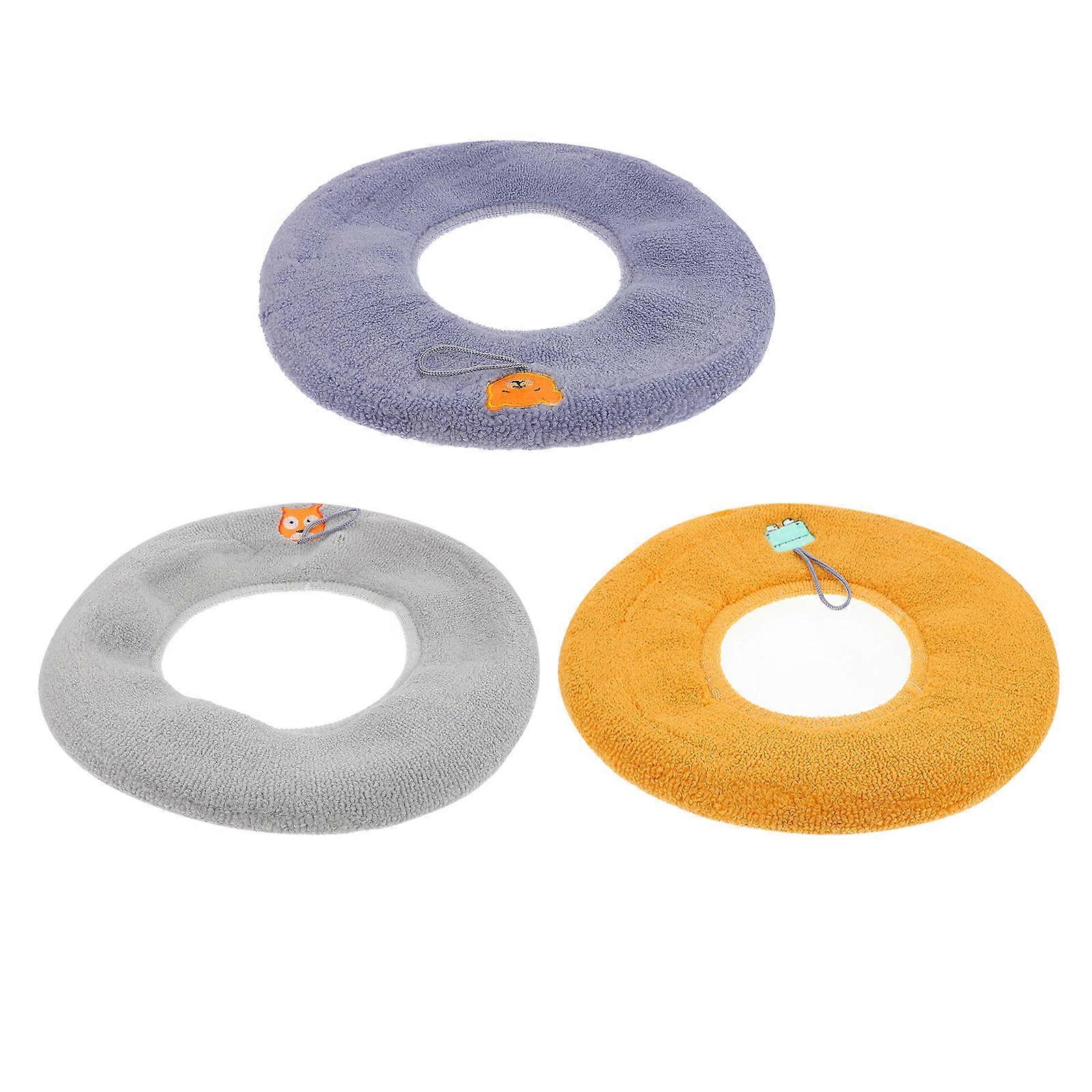 Washable Toilet Cushion O-shaped Stretchable Warm 3Pcs Light Gray