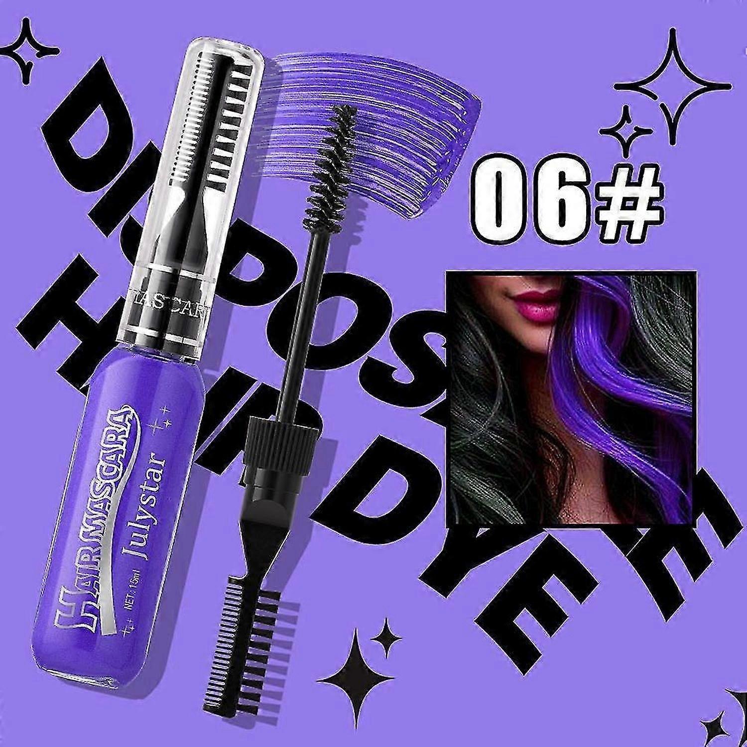 1. A variety of colors to choose from: We have 16 colors to choose from, there is always a color that suits your aesthetic.<br><br>2. Easy to use: Selecta strand of hair that needs to be colored. Gently combthe hair with a brush to color. Let it sit still for one minute Until the hair is dry. After the party,Just rinse with regular shampoo and water.<br><br>3. Versatile: This mini hair dye comb can not only temporarily dye your hair, but also dye your eyelashes and eyebrows.<br><br>4. Easy to carry: With a capacity of 15ml, this stain is small and portable, whether you go out or travel, you can easily carry it<br><br>5. Suitable for a variety of scenes: suitable for stage, cosplay and other scenes that need to be dressed up, so that your makeup is refreshed