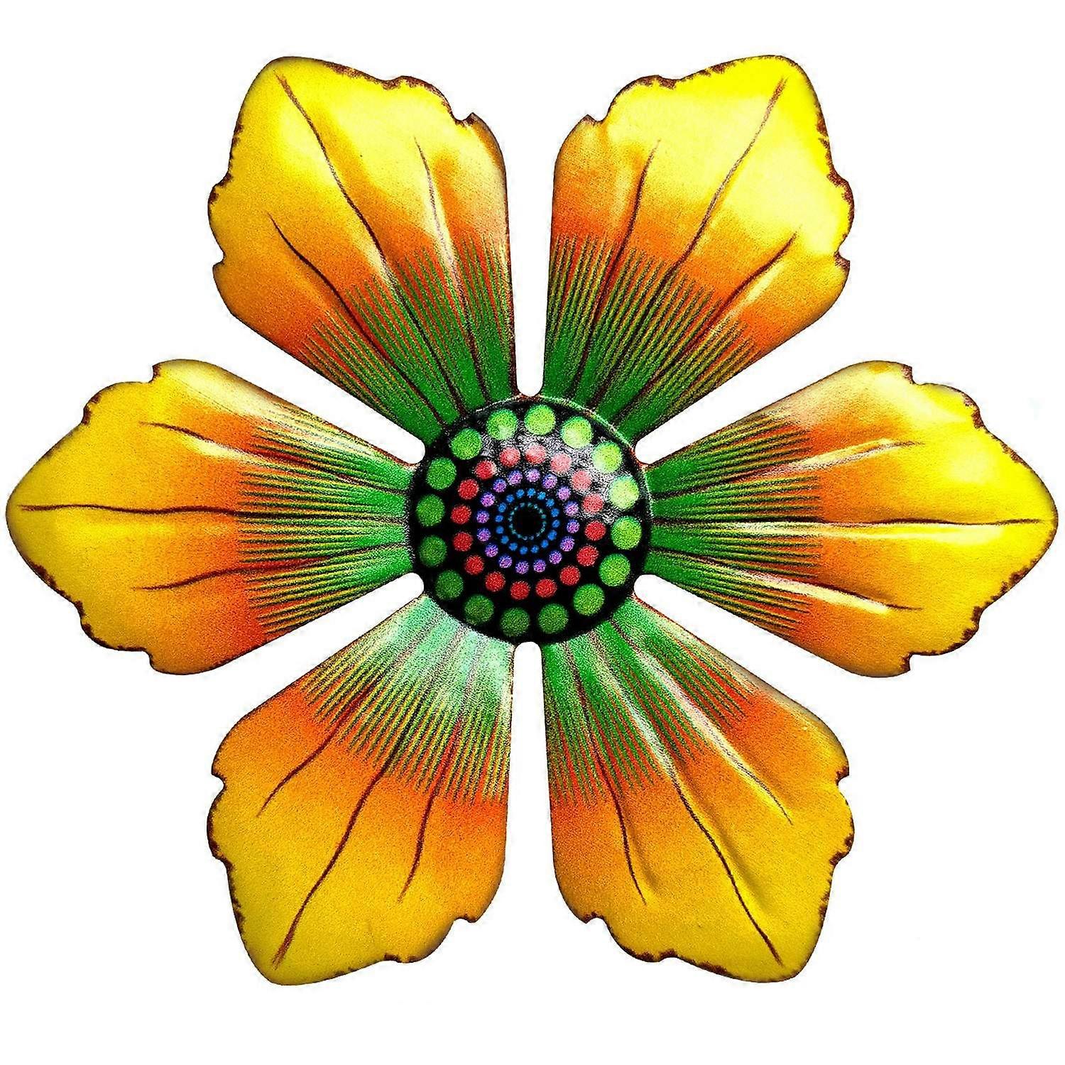 XH069 15x15x0.8cm Metal Flower Wall Art Decor Spring Outdoor Hanging Backyard Decoration-Yellow