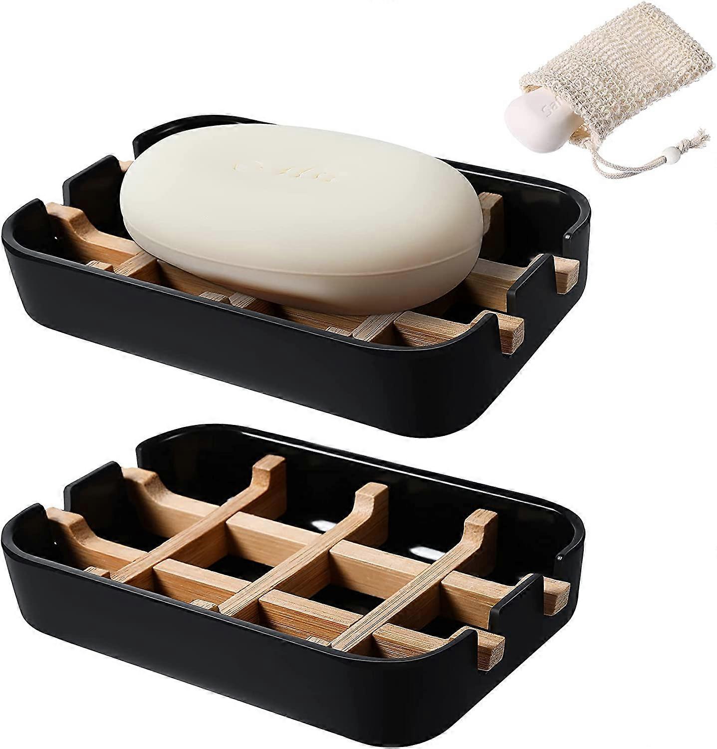 Soap Dishes for Bar Soap,Black Bathroom Soap Dish,3Pcs/Set Bamboo Soap Dishes Holder for Bathroom Shower,Bathroom Sink Soap Dish (Black)