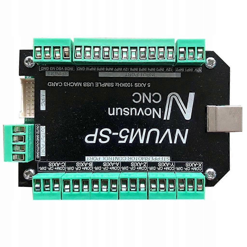 Motion control card MACH3 5-axis USB interface card CNC do CNC Description: 1. Control the stepper at the same time. 2. With a 10-way input interface, it can be configured to limit emergency stop and other features. 3. With three output interfaces, it can be configured as water-cooled, fog-cooled, and other controlled peripherals. 4. With one-way standard MPG interface. 5. Control of the PWM spindle output. 6. Auxiliary software 7. USB interface, auxiliary software. 8. Electric 9. optocoupler 10. The maximum stepper motor of 100K controls the output power, which is suitable for most machine tool systems. Specification: Material:Metal and Size: about 96x63x28mm/ 3.78x2.48x1.10 inch The package includes: 1 sztuka Control panel 1 sztuka cable do data transmission
